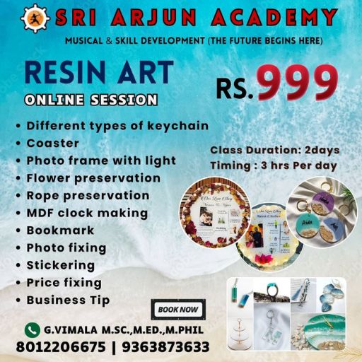 Explore creative resin art techniques to make unique designs.Create jewelry, decor items, and customized products.