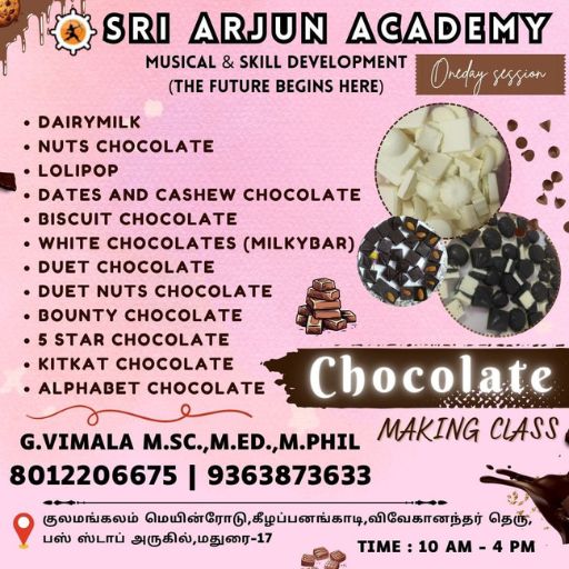 Sri Arjun Academy presents an exciting Chocolate Making Masterclass, designed for beginners and chocolate lovers who want to learn the art of crafting a wide variety of chocolates at home.